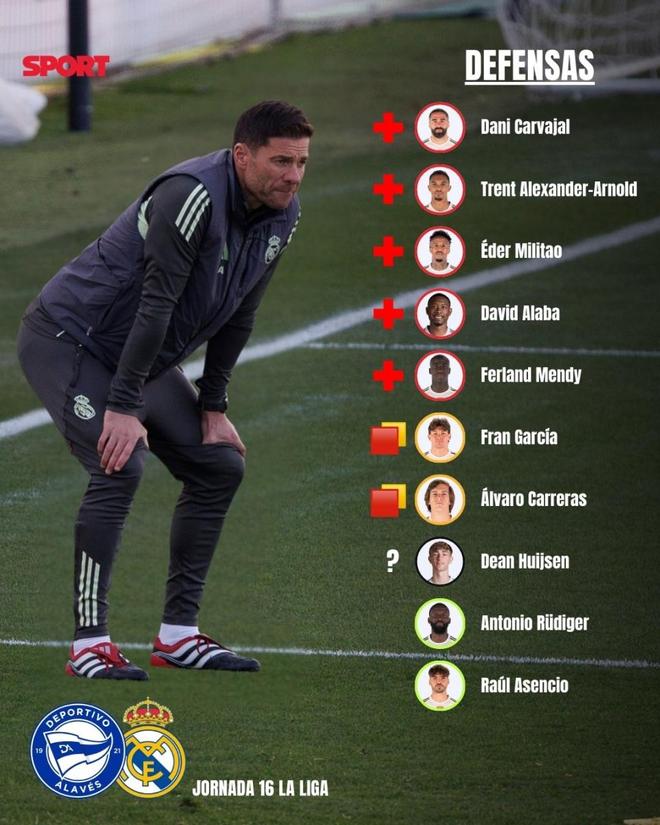 更令阿隆索无奈的是,皇马后防线本赛季遭遇严重伤病,包括米利唐在内,目前已有6人受伤:卡瓦哈尔(右膝关节镜手术)、阿诺德(左股四头肌前直肌撕裂)、赫伊森(膝盖不适)、阿拉巴(右小腿比目鱼肌不适)、门迪、米利唐。